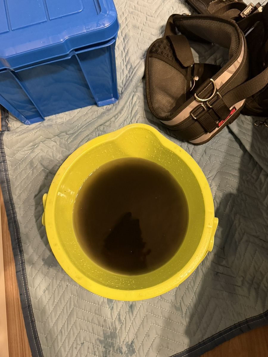 前面パネル、フィルター、ルーバーを外し、内部のアルミフィンやファンまでしっかり高圧洗浄!真っ黒な汚水がバケツに溜まり、お客様もびっくりされていました😳