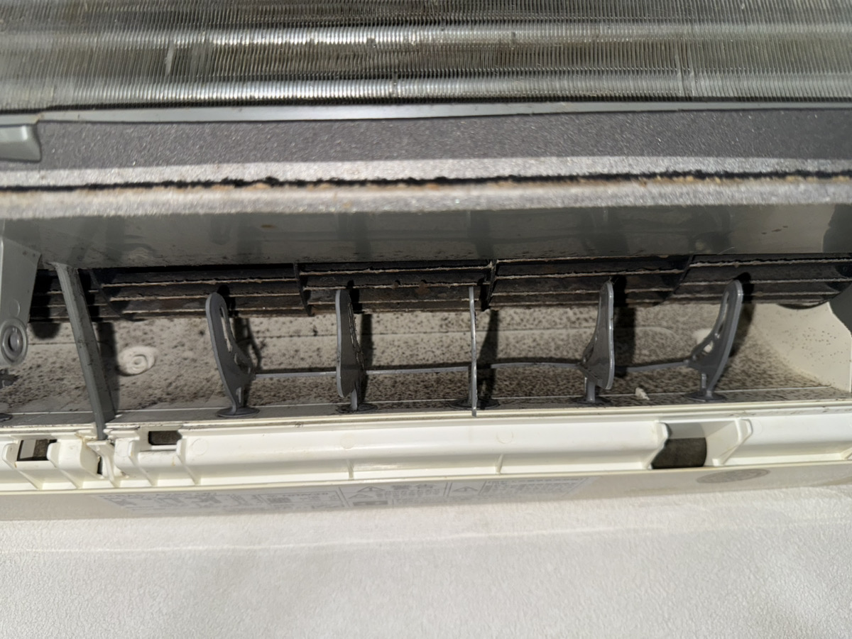 今回のように、タバコのヤニ汚れとカビが両方重なっているケースでは、通常よりも丁寧な洗浄が必要です。特に送風ファンにこびりついた汚れは臭いの元にもなるので、念入りに洗浄しました。